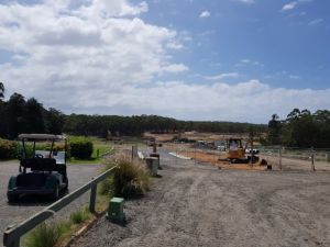 Following the Christmas and the New Year break, works have now recommenced at SIGV. Although we've had a bit of down time the site has substantially changed in shape since the turn of the year. Cut to fill earthworks have been undertaken to bring the ground levels closer to design while almost 200 metres of the sewer rising main has been installed. There has also been further progress with large watermain relocations along Sussex Inlet Road. The relocation of the Golf Club carpark is well underway with kerb and gutters in ahead of asphalt, with the new practice nets also being installed.